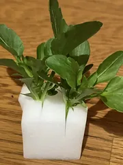 材料こんな感じです。切った先を斜めに切ってみました。お掃除に使うメラミンスポンジ 家にある様な物で、作ってみました。素人がやることなのでどうなるか分かりませんが、上手く行ったらラッキー✌️です。 【材料】 苗 メラミンスポンジ (苗の数に合わせて切れ目を入れる) コーヒー屋さんなどのドー