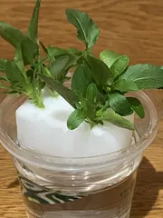 ビオラの水栽培こんな感じです 材料こんな感じです。切った先を斜めに切ってみました。お掃除に使うメラミンスポンジ 家にある様な物で、作ってみました。素人がやることなのでどうなるか分かりませんが、上手く行ったらラッキー✌️です。 【材料】 苗 メラミンスポンジ (苗の数に合わせて切れ目を入れる) コーヒー屋さんなどのドー