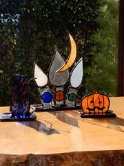 🎃ステンドグラスでハロウィン🎃 ステンドグラスでハロウィン˚✩∗*゚⋆。˚✩ お友達とお教室で作った作品です♪ 余りガラスを使い作品にしました◡̈ タイミングを逃し1年越しの投稿に &nb