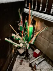 まさかの雪を迎えたツリー2 歯を磨いて、そろそろ寝る準備かなーと、その時目に飛び込んできた雪景色。これは現場確認するしかなく、、カーポートのつっかえ棒を立てて。青空工房もしっかり雪模様。チューリップもこの様子です。天気アプリには、今のところ雪予報は一つも出てない、と言う現実です。以上、現場からお届けしました❄️
