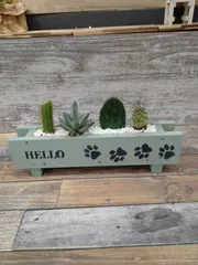横長プランターとサボテンの寄せ植え サボテンのトゲが刺さって痛かったです。でも出来上がったら可愛くて気をつけて水やり🪴をします。