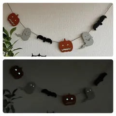 ハロウィンガーランド ハロインの飾り付け✨暗くなると目のところが光ります😱