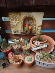 ハロウィンっぼくディスプレイ サボテン大集合😆ハロウィンパーティーです😆モルタルデコで作ったプレートの鳥かごの中にかぼちゃ🎃を入れてハロウィンっぽくしました😆😆