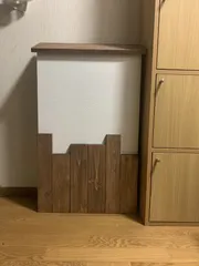 キャスター付き壁風シェルフ 私が作った中で一番BIGな作品です‼️ ノコギリあり😰、壁紙貼りありの楽しいワークショップでした。今日はラッキーなことにマンツーマンだったので、のこぎりの使い方や立ち位置、その他私の癖を見抜いて色々とアドバイス頂きました。ありがとうございました😊 持って帰ったら飾りの板が床に当た