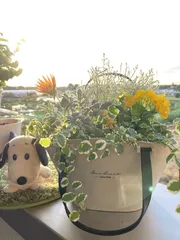 寄せ植えバイキング𖤣𖥧𖥣。𖥧𖧧 昨日の寄せ植えバイキング〰️ฅ(・¨ (●) 昨日は帰りが遅くなってしまって💦 朝日に照らされた寄せ植えです🌼.*鉢と苗選びました♡ ̖́- 鉢は2種類あって、もうひとつの方は家に同じ形のがあるのでこちらのバッグ型の鉢に♡ ̖́-⇽可愛い👜💕&n
