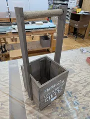 トールハンドルボックス 本日は浜松都田テクノ店でワークショップ。今日はトールハンドルボックスを作ってきたのですが、後々のことを考えた仕様になっています。色味はブラックにして、例によってしっかり拭き取りをしました。イメージ的に木目をくっきりさせたかったからです。ステンシルは置くところを玄関先を想定してあまりごちゃごちゃしない