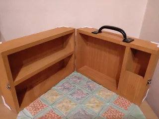 トランク風小物ケースを作って来ました✨️ 前々から作成してみたかったトランク風小物ケースを、おひとり様で色々聞きながら、お話もしながら楽しく作成出来ました✨️ ビス打ちがたくさん、キッチリと直角にしないと閉まらないなど考えることがいっぱい…。 どうしても角に金具を付けたくて…。最初は黒を選択しましたが、何だかしっくりこな