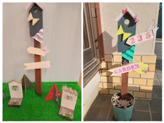 11/20にガーデンピックのWSに参加して作りましたが色の選択ミスで、パットしなかったので投稿が遅れました。 ①が工房での写真②が庭で文字の塗り替え中。工房の中と外では色が全然違います。③がDIYして明るくなったもの④初代ガーデンピックイベントで買ったもの、屋根の色は塗り替えたのでほかも手