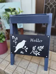 看板付き鉢置きスタンド 今年初WSです!脚があるものを作るといつも何故かガタついてしまいます💦 アドバイザーさんにお手伝いしていただきどうにか完成しました☺️いつもありがとうございます! ステンシル楽しい😍今年も色々作りたいです✨