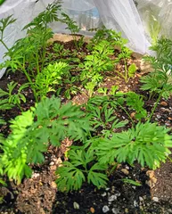 🏡の『黒田五寸人参🥕』間引いて肥料と土寄せしました ■育てた野菜 黒田五寸人参 ■エピソード(チャレンジしたきっかけなど) 初めての根菜、プランターで甘い人参🥕が育てられたら良いなとと挑戦しました。肥料やって、土寄せしたら良いとあったのでやってみたら少ししっかりしてきたみたいです。根っ子、肥って欲しいです。