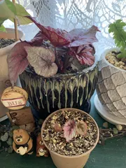 レックスベゴニアビリーフ ■作品内容3年目に突入したレックスベゴニアビリーフです!好きな色なので見ると癒されます💕ほとんどお手入れをしてないけど😅頑張って今年も冬越ししてくれます様に🙏手前の小さいのは葉を水に差してたら根っこが出てきたので土に植えたやつです🌱これは冬越しできるのか?… ■工夫ポイント※以下多肉ハック