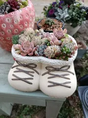 この前園芸屋さんに売ってたブーツに救出した多肉を寄せ直しました。 なかなか良い感じ。 クリスマス🎄ですねぇ。
