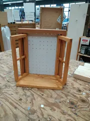 窓型ウォールラック♪ 先日のWorkshopで作ってきました❢窓枠とか…今回はボンドで付ける箇所が多くて、形を整えるのにちょっと必死になりました(笑)皆さんが投稿されてるのを見てそれを参考にさせて頂き、私も窓枠を固定せず、丁番を付ける事にしました♪家で…ネジネジ😅丁番…付けました✌️置く場所も決めてて…とりあえず、飾って