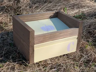 高さ2通りのフードテーブル (PE-03) 2個目のフードテーブルは、親戚のヨーキー🐕️の為に🤗名前は『しーちゃん』キノコのステンシルが、意外に可愛くて笑ってしまいました🤭WSでご一緒した方々の作品と