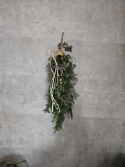 ガーランド作り🌲 『森の香りの冬のガーランド』作りましたガーランドって?でしたが、軸になる枝にパーツをワイヤーで固定するリースの縦型って感じですタイトル通り、森の香りに包まれて癒されました 完成後、青空の下で写真を撮ったのに、残念ながら全く使えなくて帰宅後に撮り直しました写真って難しい😰