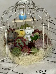 鳥かご寄せ こちらオーダーいただいた 鳥かご寄せです♪(๑ᴖ◡ᴖ๑)♪ お世話になった先生が異動されるので 贈り物🎁にとのオーダーでした 多肉寄せを選んでくれて感謝です😊💓