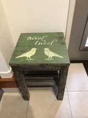シェルフスツール 玄関でお出迎え! 初めてのB&B ビンテージ風シェルフスツール可愛い鳥柄 楽しいものになりました