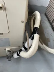 ベランダの室外機配管の養生 ↑after↓before2階のベランダに置いてる室外機の配管の化粧テープが経年で剥がれ、銅管の剥き出し部分が多くなってるので少しでもと修正、養生しました。つい先日、保温チューブをカインズ店頭で見つけた(下画像↓)ので、そこから早かったですね。右手の13×1Mを購入しました。手順としては、作業し易い