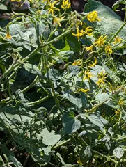花が咲き始めた🍅 また元気になってきた🍅です😊 花がたくさん咲き始めましたが、実が成って食べられるでしょうか? 食べられると嬉しいなぁ✨