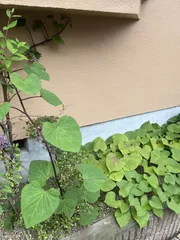 先日、昨年育てたサツマイモの蔓が玄関先まで伸びているのを投稿しました。その蔓が出窓の下まで伸びてきています。サツマイモの生命力に感動してしまいます。掘るとサツマイモの実が出来ているのでしょうか。楽しみではあります。