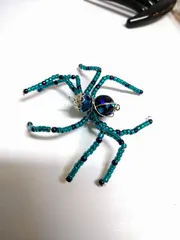 ハロウィンブローチ 蛍石のお尻にガラスビーズの足ワイヤーで少し巻き付けてみました。ハロウィンが愉しみです🎃🕸