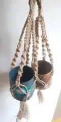 マクラメの動画をみながらプラントハンガーを作りました鉢のサイズに合わせて作れるので手作りはいいですよね☺️ カインズで太さ3mmの麻紐でマクラメツリーの残りで作り100m全部使い切りました😆🙌最近、材料を取っておくより使いきった方がスッキリします☺️さぁ、どこに飾ろうかな~🎶