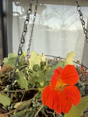 こうべを垂れる笑⃝ 今日は風が強かったけど暖かかったので久しぶりにベランダでゆっくり作業しました·͜· ꕤ︎︎ 我が家はかなり狭く、激狭ベランダガーデニングなので置くとこなくて吊るせるものは吊るしちゃえって事で物干し竿にS字フックで吊るしてます。 で、ちょっと手の届きにくい所のものを久しぶりに手元に