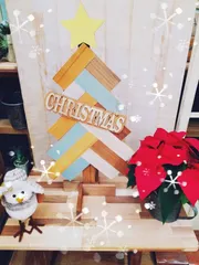 玄関開けたらすぐクリスマスコーナー 玄関の扉をあけるとすぐ目の前に見える場所なの、クリスマスコーナーを作りました。カインズストアオリジナルで作った折りたたみ出来るwelcomeフラワースタンドが役に立っています。香りのする針葉樹で作ったリースを飾り、下には同じく香りのする針葉樹で作ったテーブルツリーを置き、サイドにはプリザーブドフラワ