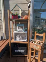 先月、ハンガーラックのWSに参加しました😊置く場所を決めかねて、今頃の投稿になってしまった😅作業はダボがたくさん💦🪚😅大きいので塗りも大変、今回はウォルナットにしました🌟倉庫に置こうと思っていたのですが、あれこれ模様替えの結果、屋根のあるデッキに置くことにしました🌟ハンガー部分にキャンプ用のフックを