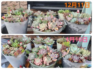 私みたいに、ぷくぷく☺️ こちらも、⛄️予報?だったのに、暖かい日になり、多肉ちゃん達を、出してあげました