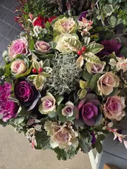 GWS 💜🤍💚葉牡丹のマウント寄せ植え