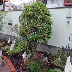 ギンモクセイがいい感じ 庭に出るとほのかに甘い香りが… 金木犀よりも花色は薄く匂いも優しい ずっと庭にいてたい