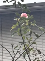 ピエールドゥロンサール 12月21日のピエールドゥロンサール❣️咲いててびっくりしました。庭で少しづつ剪定してます。ほとんどバラは終わってたんですが🤭ピエールだけ咲いてました。高い所なので後で家の中で飾ろうと切ってきました。ちょっと儚げです🫧 今年春のピエール