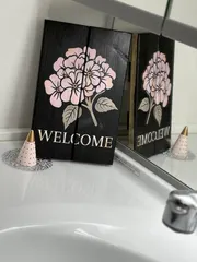✨B&B✨はじめてのタイニー🩷 ✨B&B✨はじめてのタイニー🩷は✨紫陽花🤍Welcome ✨を🩷大人ピンク🩷メインで仕上げてみました♡🤍♡🩷♡🤍♡ 我が家の洗面台は玄関🚪から近い位置にあっておうちに入ると✨1番に立ち寄るエリアです✨ 今日から✨お客様のお出迎え✨は✨サイズ感ピッタリの✨タイニー🩷にお