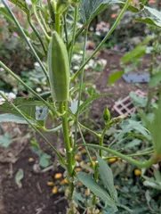 まだ収穫中 今年はまだオクラが収穫できてます😄 抜いて次の野菜植える準備したいのですが、😅そのままにしてます😊
