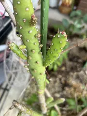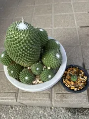 100均かな買ってスクスクたてに伸びてトゲも凄いので取り扱いが大変なので外に植えました😄ますます縦に伸び子供まで出てきて元気に生きてます結構長い事私の🏠庭にいます😄生命力のある🌵🩷