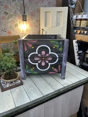 B&bのボックスプランター✨ 本日はB&bのボックスプランターを作ってきました✨今回の作品は木工の工程も結構あって楽しく作れました😍ステンシルは相変わらず上手に出来ないのですが春のお花をイメージしてやりました🌸こちらも楽しくできたので良かったです😁