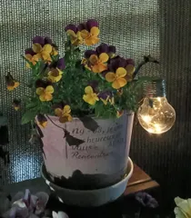 息をふきかえしたビオラちゃん😆 電球がとてもロマンチックですね🙇💕