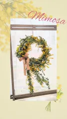 ミモザとスターチスのスワッグ&リース 神戸のお花屋さんのWSでミモザのリースを作りました🤗💕 リースにスワッグを付けて、そのスワッグもリースに付け足すという技😅🙄 いろいろさせて頂いて、感謝です🙌♥🌟 ミモザの花言葉は🍀感謝🍀です