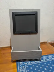 黒板付きプランターカバー 今回、使える色が増えたそうで、早速その新色(色の名前忘れた)を塗ってみました。出来上がりが、思ったより気に入ったので、プランターを入れるところに、ぬいぐるみを入れて飾っています。