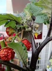 ハロウィンの寄植え たくさんの蕾。咲いているのは一つだけ。水やりしてたら花なすにお花が❣ かわいい💞