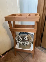 傘立て。玄関のドアの色と同じにしました。少し軽いのでワンチャンの置物を乗せて可愛い傘立てが出来上がりました👍🤗