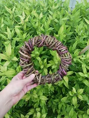 しっかりとしたリースが出来上がりましたね さつまいものつるとは思わないです 乾燥すると綺麗なむらさきが変色するのかな? 素敵💓なクリスマスリースが出来そうですね✌️
