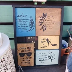 廃材にステンシル お気に入りのステンシルを廃材に 枠をつけて額縁にしました
