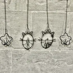 ■作品内容ワイヤーのおひなさま猫バージョン😺■作品のこだわりポイント おひなさまのガーランドを作った時に、猫バージョンもかわいいかも?!と思って猫耳と髭をつけてみました。