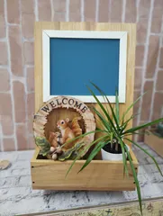 黒板付きフラワースタンド♬ 可愛いです〜😊 色は、メープル、バニラ、アンティークカラーズのピーコックブルーたぶん ) 家に帰ってとりあえず、チョークでカキカキ✏✎✐ ※先生に、ステンシルシートでチョークで描けば良いと聞いて、やってみました。チョークで描いたあとに指でならしてみました。 w