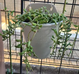 ■作品内容アーモンドネックレスの植え替え ■工夫ポイント暴れ散らかしていたので吊る下げ鉢へ植え替えました ■材料吊る下げ鉢鉢底石お花の土■工程吊る下げ鉢に鉢底石を敷きお花の土を入れて、鉢から掘りあげたアーモンドネックレスを植える