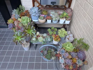 群生多肉さんたち✨✨ ■作品内容我が家の群生多肉さんたち❤️ ■工夫ポイント群生多肉はお水が切れやすいのでトレーに纏めておひとり様多肉さんよりマメにお水やりをしています😊 子株が育ったり胴切りして群生になりました🎶 「デルル」私のお気に入り群生多肉です✨青白い葉が特徴の綺麗な子❤️葉挿しもめ