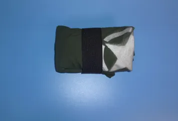 男ミシン(マイBAG) ↑ マイBAG(買い物袋) 折りたたむと 5×10cmです。 今回は男に似合う アーミ-グリ-ンで作ります。 ↓ 材料 ナイロンタフタ、パラコ-ド、ナイロンベルト これだけです。 ↓ BAG底の型紙です。幅48cm。奥行20cm。高さ45