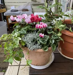 早めのクリスマス向け寄せ植え 家にたまたまあった柊とランタナを使って、ガーデンシクラメンの寄せ植えを作りました。(いくピさんの作品によく似てますね、ごめんなさい😔…見てなかったのですが、たまたま似てしまった…) 夏の寄せ植えで使った、ランタナとアイビー、一年草が枯れたらなんか寂しくなり、それならいっそ、ハロウィン通り越してクリ